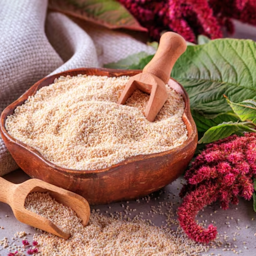 The potassium and fiber in amaranth powder contribute to maintaining healthy blood pressure and promoting cardiovascular health. -