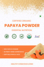 The powder is 100% pure and unsweetened, with no added sugar, colours, flavours, or preservatives. It delivers the natural essence of papaya, making it suitable for everyday use in smoothies, drinks, desserts, yogurt, baking, and culinary recipes. It is also compatible with vegetarian and vegan diets.