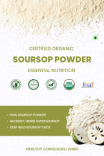 Finely milled Soursop (Graviola) Powder with natural tropical flavour. Ideal for smoothies, drinks, teas, and recipes. No added sugar, colours, or preservatives.