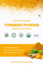 This turmeric root powder is finely ground and free from artificial colors, preservatives, or chemicals.